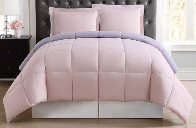 Revolutionary softness is what you get with this Truly Soft Everyday Reversible Comforter Set. Comforter features 100% polyester microfiber front and back, 100% hypoallergenic polyester filling, and reverses to a solid color. Set includes comforter & 2 pillow shams (1 twin).