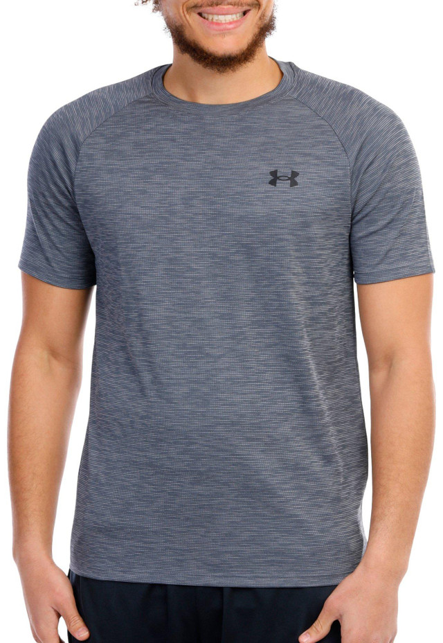 This UA Tech 2.0 short sleeve shirt features a solid textured design on lightweight stretch fabric, a crew neckline, loose and light fit that keeps you cool, quick dry, performance stretch, anti-odor tech, and relaxed fit. Fabrication 100% polyester