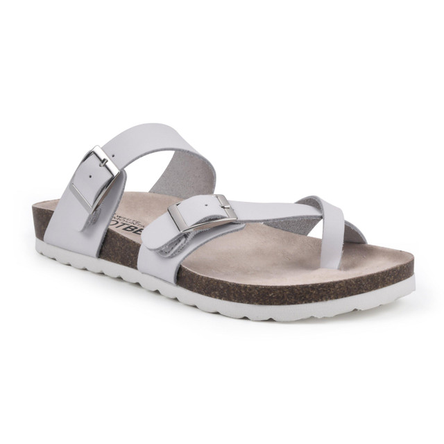 The classic Gracie leather sandal by White Mountain Footbeds features a crisscross strap at the toe and a molded suedette with an adjustable buckle. The contoured footbed with heel cup provides ultimate comfort for you to wear all day everyday.