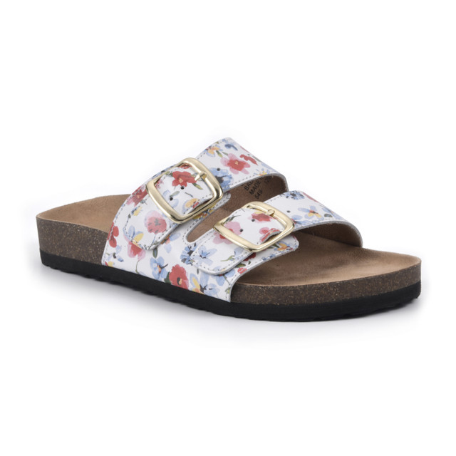 The Helga suede leather slip on sandal by White Mountain Footbeds is as close to walking on sunshine as you can possibly get. This ultimate summer style features a genuine leather upper and a contoured suedette footbed for a comfortable fit with 2 adjustable buckles.