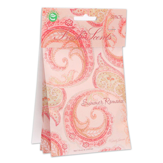 The WillowBrooks Summer Romance Sachet 3-pk. features long lasting fragrances of passion fruit, peony, pine, and orchid from concentrated essential oils. Fragrant sachet can be used in a variety of places & is eco-friendly. They are 30% recyclable, 100% biodegradable. Freshen any room in your home or use in your vehicle.