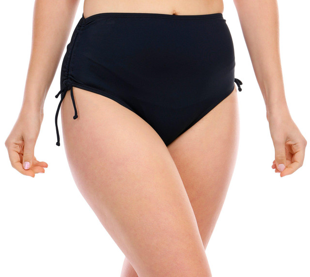 Womens Solid Adjustable Side Ruched Full Swim Briefs
