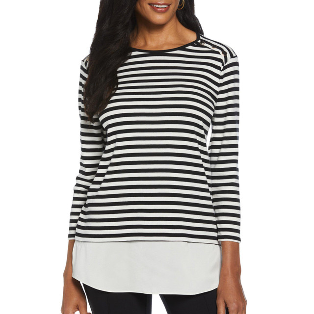 Rafaella Womens Stripe Rivet Detail Layered 3/4 Sleeve Top