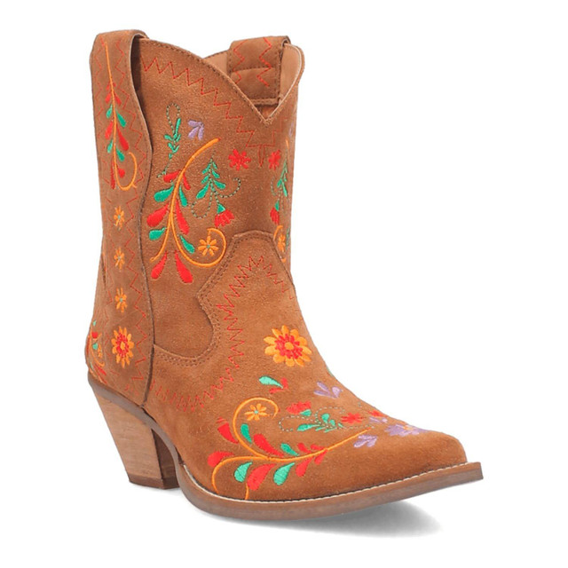 Refined and sweet, the Dingo1969 Sugar Bug bootie is a cute and sweet addition for any occasion. Featuring fetching floral stitching throughout the foot and shaft, the 12-inch tall Sugar Bug also comes with a 2-1/2 inch heel and pull on tabs for easy-peasy wear.