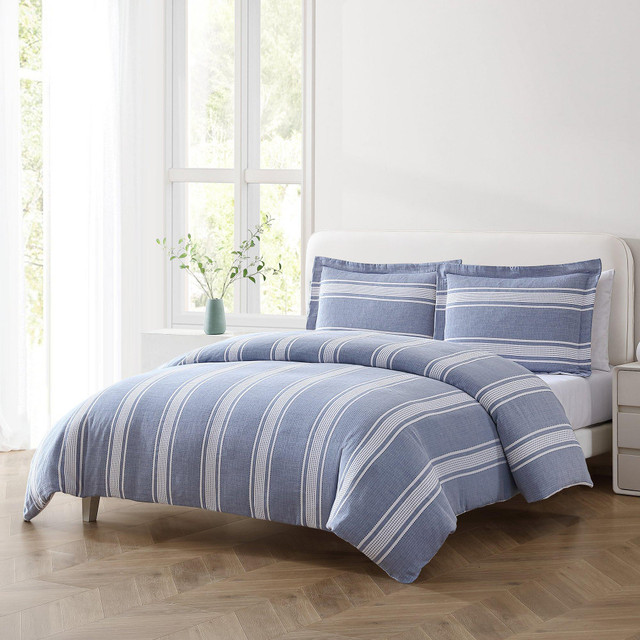 ZEST Kitchen + Home is designed to help you celebrate life every day. Our passion for quality embodies every product, providing timeless style with a modern touch. Only available at Bealls Florida! This comforter set features a modern striped design. 1 standard size comforter (full measurements for each size in traits) and two shams (1 included with the twin set.) Fabrication is cotton and polyester. Certified STANDARD 100 by OEKO-TEX.