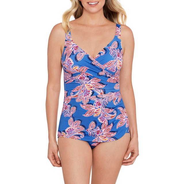 Bring playful sophistication to your beachwear with this Women's Balinese Crossover Sarong One-Piece Swimsuit. Featuring a stunning print, this swimsuit offers a fun, fresh twist on traditional swimwear. The relaxed fit and soft fabric ensure comfort and flexibility, while the unique sarong design provides extra coverage and a flattering silhouette.