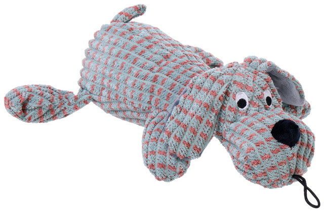 Add a playful touch to your pups toy collection with this 15-inch striped dog toy shaped like a dog. Soft and cuddly, it is perfect for tossing, tugging, and snuggling during playtime.