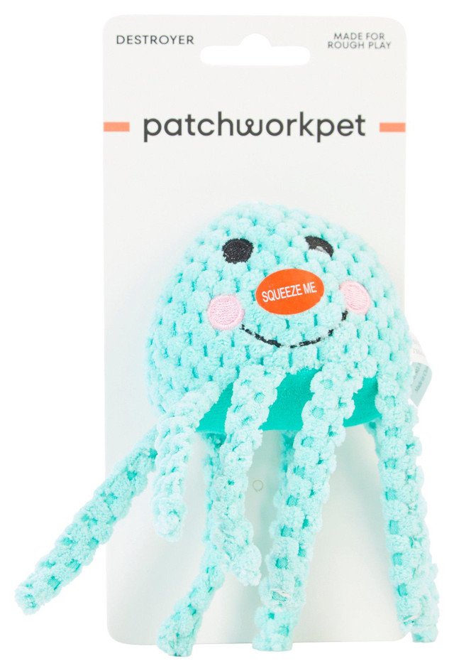 Bring underwater fun to playtime with the 6 in Octopus Dog Toy designed for rough play and built with a durable construction to withstand active chewing. Features a built in squeaker for added engagement and fun. Soft and lightweight for indoor play or snuggling. Fabrication is 100% polyester. Measures approximately 6 in x 3.5 in x 2 in.