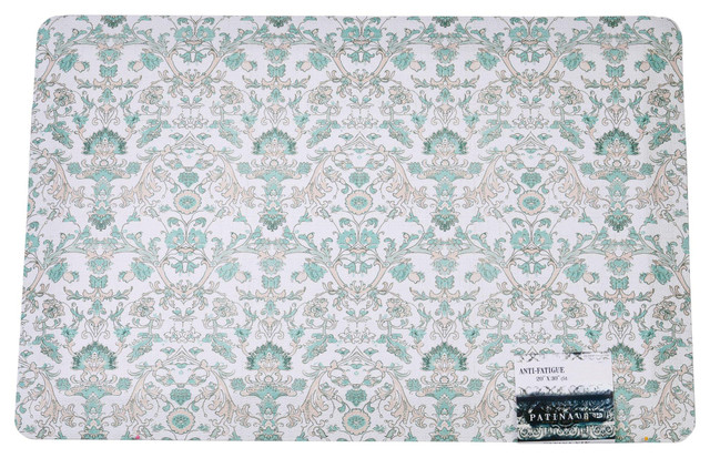 Add beauty and support to your culinary space with the 20x30 Anti Fatigue Kitchen Mat Green Floral. Showcasing an elegant green floral pattern, the design pairs timeless style with everyday function. Memory foam interior provides cushioned relief during long hours at the counter. Ideal for high traffic kitchen areas. Fabrication is 100% PVC (outer) 100% polyurethane foam (inner). Measures 20 in x 30 in.