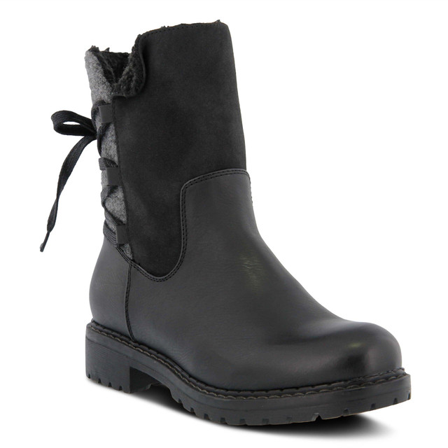 Stay cozy and stylish in the Patrizia Dawna Boots. These pull-on booties feature a soft faux wool shaft with adjustable back laces and a full-length inside zipper for easy wear. A sculpted heel and flexible outsole offer comfort and stability, while faux fur lining and insole keep feet warm. Perfect for adding chic flair to your cold-weather wardrobe.