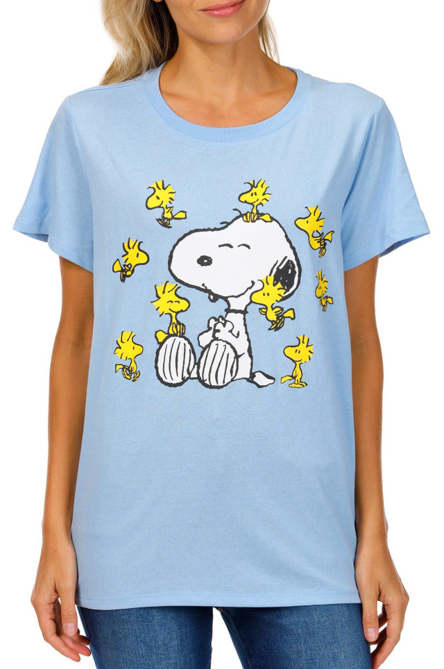 Add playful charm to your wardrobe with this Juniors Snoopy Graphic Tee. Featuring a cheerful Snoopy & Birdie design, this tee offers a classic crew neckline and comfy short sleeves. Fabrication 60% cotton, 40% polyester