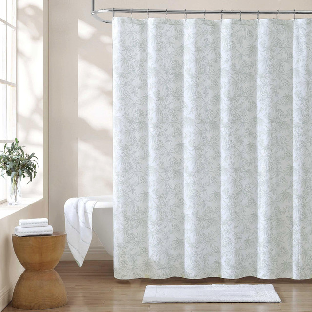 Transform your bathroom into a tropical oasis with the Pen and Ink shower curtain. The tropical design features finely drawn botanical and coastal motifs to create a seaside escape in your home. Shower curtain measures 72 in. x 72 in. Durable and lightweight, this shower curtain is machine washable for easy care. Liner and hooks not included.