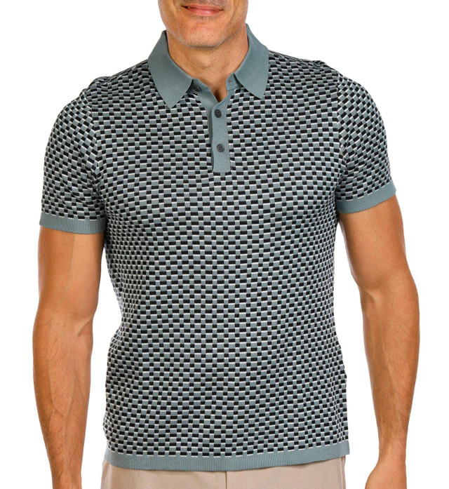 This short sleeve polo shirt features a classic button neckline and soft fabric for a comfortable fit. The allover geo print adds a modern touch to a timeless style, perfect for casual outings or a polished everyday look.