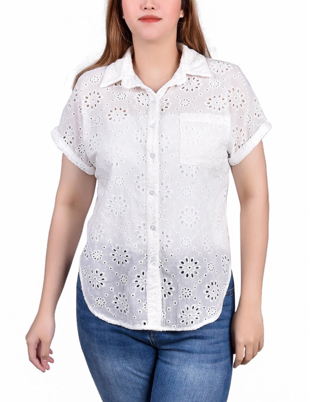 Petite Short Sleeve Eyelet Jersey Blouse