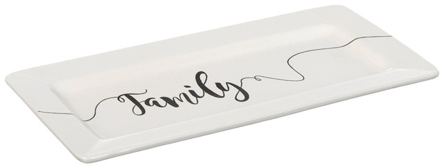 Celebrate gratitude with this 16 in x 8 in ceramic tray featuring a heartfelt Family message. Perfect for serving, decorating, or gifting, it adds a warm, meaningful touch to any space. Ideal for seasonal gatherings or everyday inspiration.