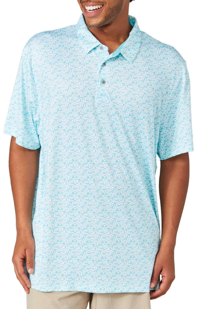 Gear up for the golf course in this polo. This golf polo provides a three button placket detail, UPF 50 sun protection, and moisture wicking properties. Fabrication is 92% polyester and 8% elastane.