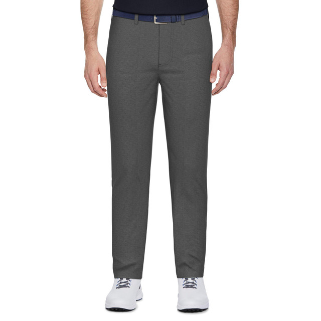 These sleek flat front golf trousers are crafted from a textured fabric to add dimension to your look. Performance stretch and a flexible active waistband help them move with you smoothly as you make your way around the course, while moisture wicking moves sweat away to help keep you dry. Sun protection helps to block damaging UV rays from passing through the material.