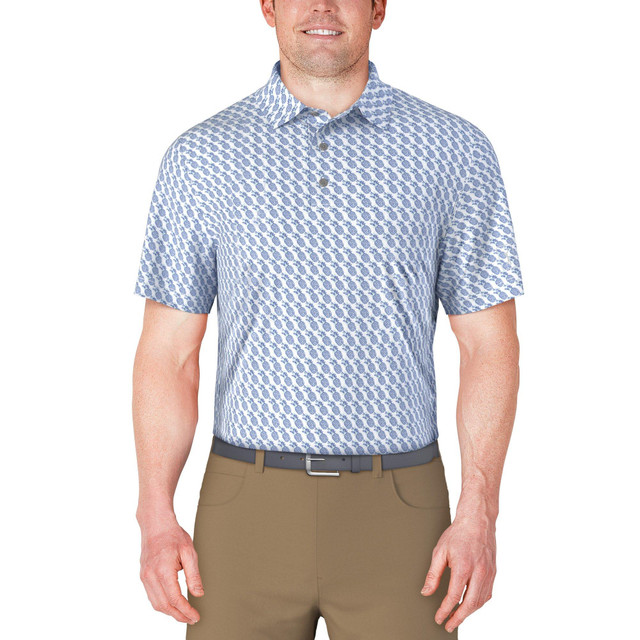 The pineapple print on this golf polo shirt gives your golf wear an eye-catching touch. This golf shirt also includes sun protection for added coverage and moisture-wicking technology to help you feel comfortable and dry. Fabrication is 92% polyester and 8% elastane.