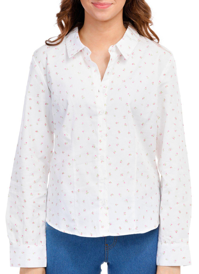 Introducing the Juniors Floral Long Sleeve Button Down Top, made from 100% cotton for a soft and breathable feel. This charming top features a collared neckline and a button-down front for a classic look. The long sleeves provide coverage and versatility, while the ditsy floral print adds a touch of whimsy and femininity. Perfect for both casual and dressy occasions, this top is a delightful addition to any wardrobe.