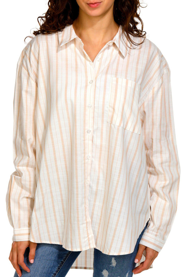 Pink Rose Juniors Long Sleeve Stripe Button Down Top