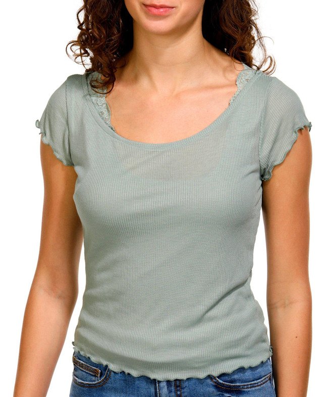 Enhance your wardrobe with our Juniors Mesh Short Sleeve 2Fer Top, crafted from a blend of polyester and rayon for a comfortable fit. This stylish top features a short sleeve mesh overlay and a solid ribbed camisole underneath. Perfect for pairing with jeans or skirts, its versatile design makes it ideal for casual outings or special occasions.