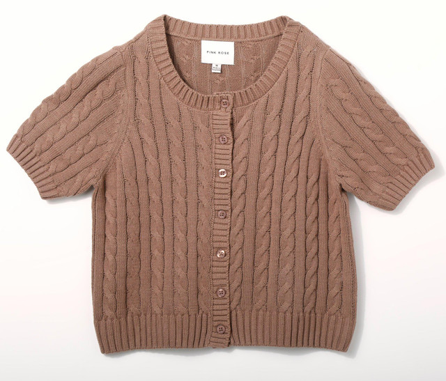 Refresh your casual wardrobe with the Juniors Short Sleeve Cable Knit Button Down Top. Featuring a soft cable knit texture and classic button-down front, this solid color top blends comfort with timeless style. Perfect for layering or wearing solo for a laid-back look. Fabrication 60% cotton, 40% acrylic