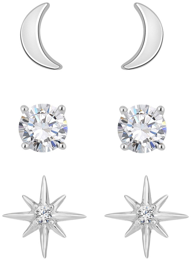 Discover timeless elegance with our Signature 3-Pc. Cubic Zirconia Stud Earrings. This stunning set includes three pairs of sparkling studs, each designed to elevate your accessory collection. Featuring high-quality cubic zirconia, these earrings radiate brilliance and mimic the beauty of genuine diamonds. The set offers a variety of styles, including classic round, elegant princess cut, and a modern geometric shape, allowing you to effortlessly switch up your look for any occasion.