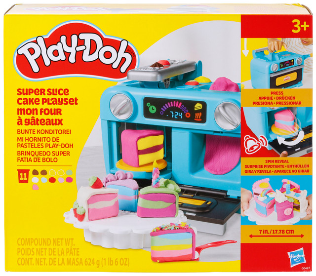 Bake sweet pretend cakes with a colorful set that is perfect for mini bakers! This play food set comes with an oven, icing piper, cake server, molds, and 11 shades of moldable, stretchable dough.