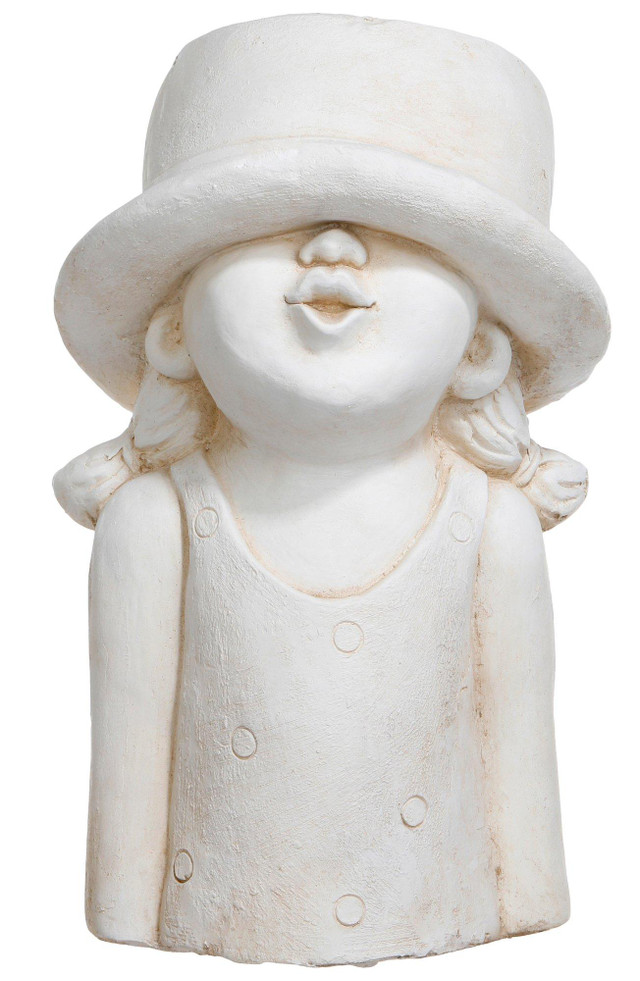 Introducing the 21 in Girl Hat Planter, a whimsical and charming addition to your garden or home decor. Made of durable cement, this planter features a unique design of a girl wearing a hat, adding a touch of personality to any space. Perfect for showcasing your favorite plants or flowers, its 21-inch size provides ample room for growth. This planter combines functionality with artistic flair, making it a delightful centerpiece for any setting.