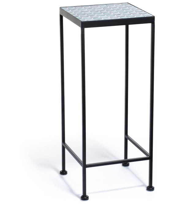 Enhance your garden or indoor space with the Turquoise Mosaic Plant Stand. Crafted from sturdy metal, this stand measures 8 inches by 8 inches by 19 inches, providing a stable and stylish platform for your favorite plants. The vibrant turquoise mosaic design adds a pop of color and artistic flair, making it a perfect addition to any decor.