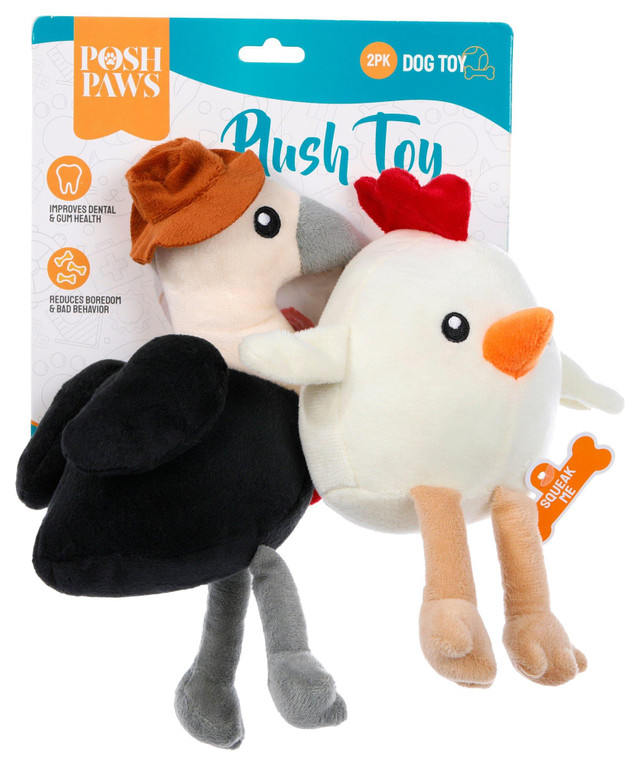 Double the fun for your furry friend with this Ostrich and Chicken Toy set! Featuring two adorable bird pals, each toy is crafted with soft plush fabric and includes a built-in squeaker for interactive play. Perfectly sized for medium to large dogs, these cute and cuddly toys are great for tossing, chewing, or snuggling. Bring home the farmyard fun with this playful duo, ideal for keeping your pup entertained and tail-wagging happy!