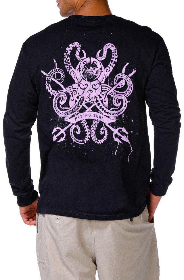 Dive into bold style with our Men's Long Sleeve Octopus Tribe Shirt. Featuring a striking octopus graphic on both the front chest and back, this shirt pairs long sleeves and a classic crew neckline for comfort and standout ocean-inspired flair. Fabrication 100% cotton