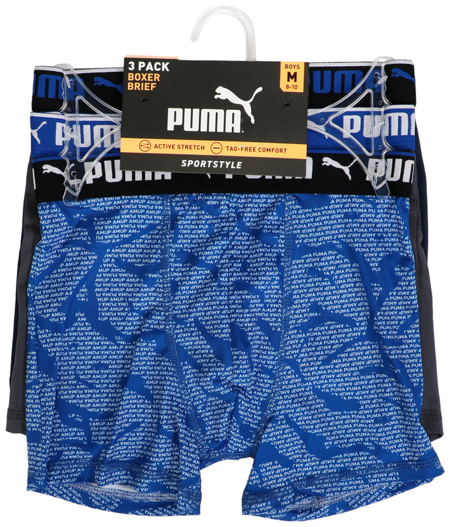 Support active days with the Boys 3 Pk Sportstyle Boxer Briefs. Featuring a mix of solids and prints, each pair offers active stretch and tag free comfort for a smooth fit and all day ease. Ideal for school sports or everyday wear. Fabrication is 95% polyester 5% spandex.