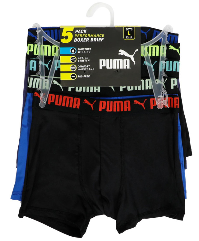 Keep up with active routines in the Boys 5 Pk Performance Boxer Briefs. Designed for movement with active stretch and tag free comfort, each pair offers a supportive fit ideal for daily wear and sports activities. Fabrication is 95% polyester 5% spandex.