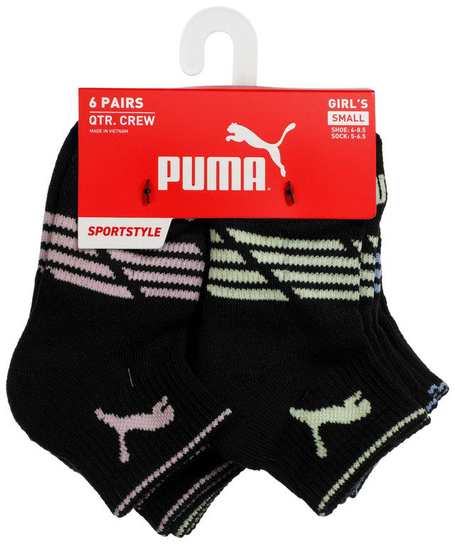 Keep her feet comfy and cool with this 6 pack of Girls Sportstyle Quarter Crew Socks. Made with soft polyester and stretchy spandex, they feature mesh ventilation for breathability and sport cushioning for all day support. Designed to fit girls shoe sizes 4 to 8.5, these quarter crew socks are perfect for active days.