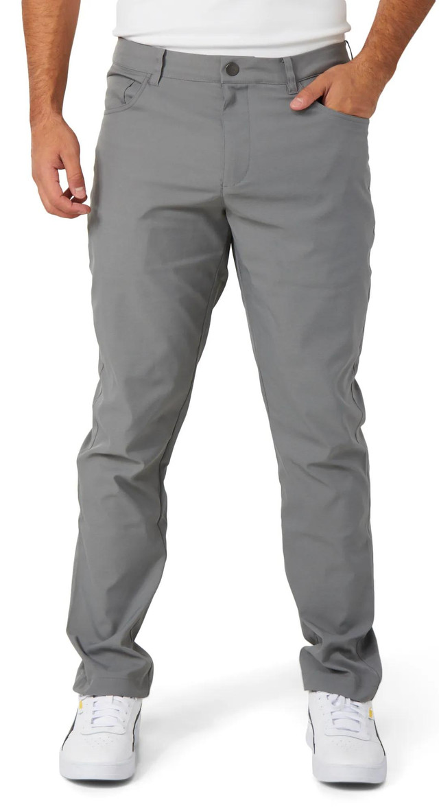 These men's Jackpot golf pants deliver performance and style on the course. Featuring a solid color, UPF 50 protection, button-fly zip closure, and a 5-pocket cut, they offer a straight leg fit with stretch fabric for all-day comfort and mobility. Ideal for sunny rounds and sharp looks.