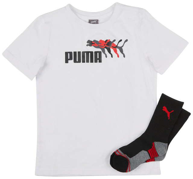 This Little Boys Active 2-Piece T-Shirt Set features a bold logo screen print tee and matching crew socks. Crafted from a soft 60% cotton, 40% polyester blend, it offers comfort and sporty style for everyday play.