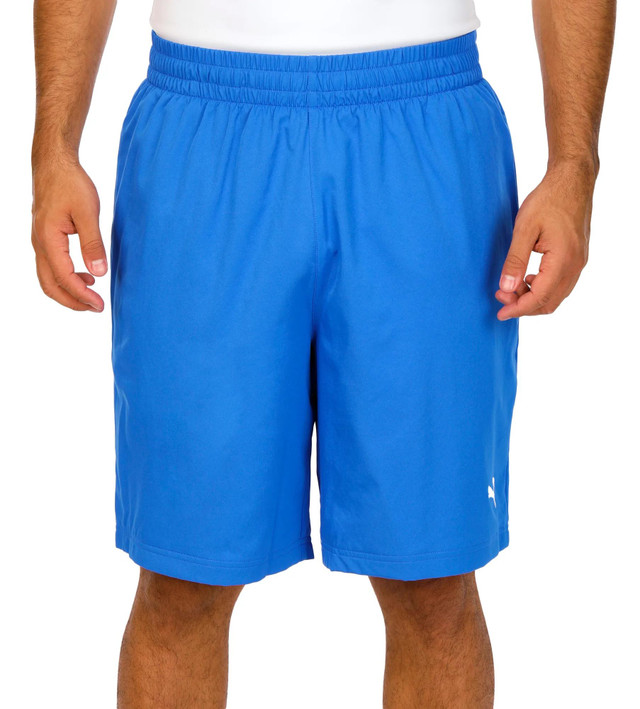The Men's Active 9 in ESS Woven Shorts feature a solid color and an inner drawstring elastic waistband for a secure fit. Side seam pockets add function, while the 9 inch inseam offers balanced coverage and comfort for everyday movement or training. Fabrication 100% polyester