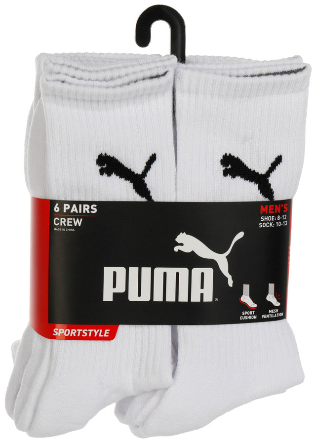 Elevate your sock game with these Men's 1/2 Terry Crew sportstyle Socks. The pack includes 6 pairs of socks of solid colors that will complement any outfit. These socks are not only soft but also durable. Featuring a cushioned design, these socks will keep your feet comfortable all day long. Shoe Size: 8-12, Sock Size: 10-13. Fabrication is 94% Polyester, 4% Rubber, 2% Spandex.