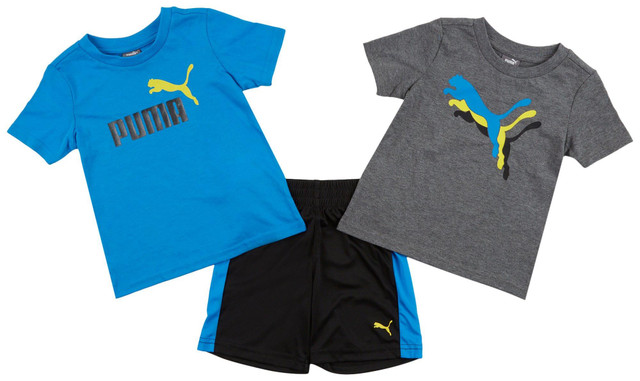 This 3 piece set offers versatility and comfort with two soft tees and a pair of active shorts. Perfect for mixing and matching, the tees are soft and breathable, while the active shorts provide the flexibility needed for endless play.