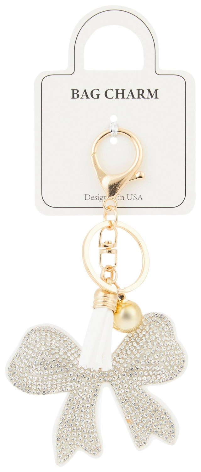 Add a touch of elegance to your everyday accessories with this glittery rhinestone bow bag charm. Featuring a sparkling silver-tone bow, gold hardware, tassel detail, and pearl accent, this charm is perfect for handbags, backpacks, or keys. Chic, feminine, and gift-ready.