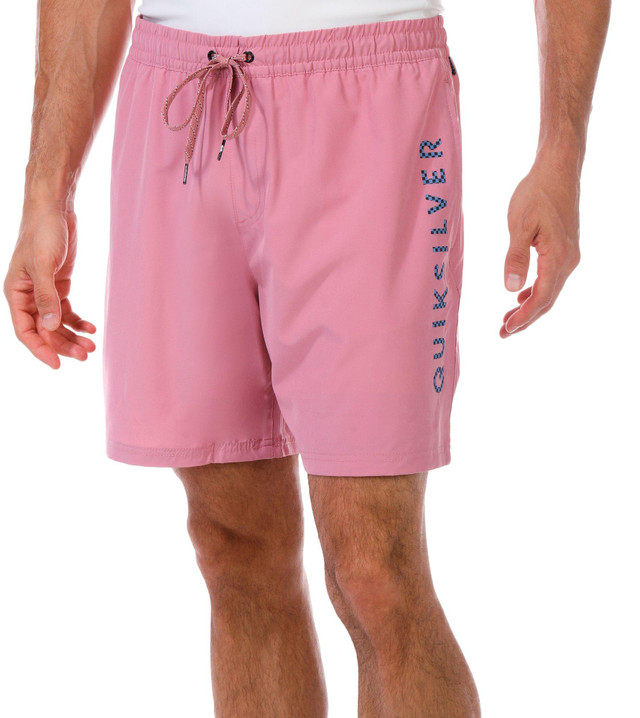 Keep it cool and casual with these Men's Solid Logo Volley Shorts. Designed with a drawstring waistband, side seam pockets, a back pocket, and bold brand script on the left leg, they are perfect for beach days or laid-back weekends. Fabrication 90% polyester, 10% spandex