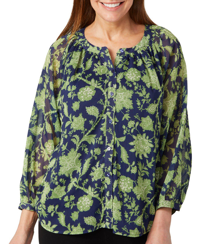 Embrace timeless elegance with this Long Sleeve Top. Featuring a beautiful floral print and a button-front design, this top is both stylish and versatile. The lined fabric ensures comfort and a polished look, while the long sleeves provide a touch of sophistication.
