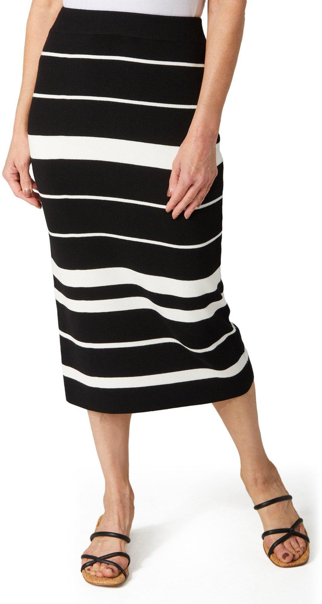 The Women's Pull-On Stripe Knit Skirt offers a perfect mix of comfort and style. Made from a soft blend of 78% rayon and 22% polyester, this 31-inch long skirt features a flattering stripe pattern that adds a modern touch to your wardrobe. The pull-on design ensures easy wear, while the stretchy fabric provides a comfortable, relaxed fitideal for casual days or dressing up for an outing.