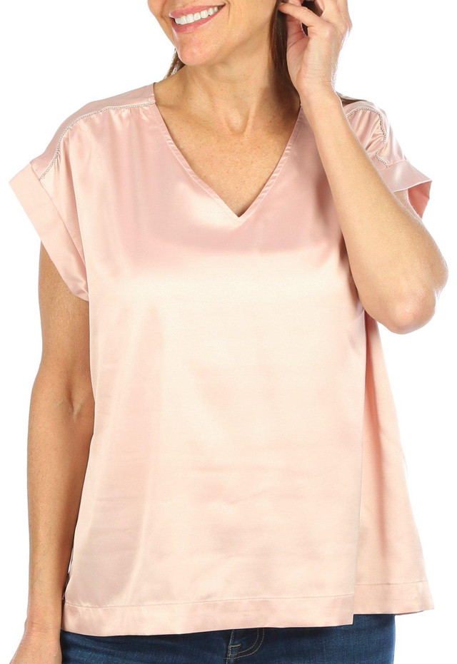 Introducing our Women's Satin V-Neck Top, a perfect blend of elegance and comfort. This top features a stylish solid color that effortlessly complements any outfit. The v-neckline adds a touch of sophistication, making it ideal for both casual and formal occasions. Crafted from high-quality satin, it offers a luxurious feel and a flattering fit. Elevate your wardrobe with this versatile and chic piece.