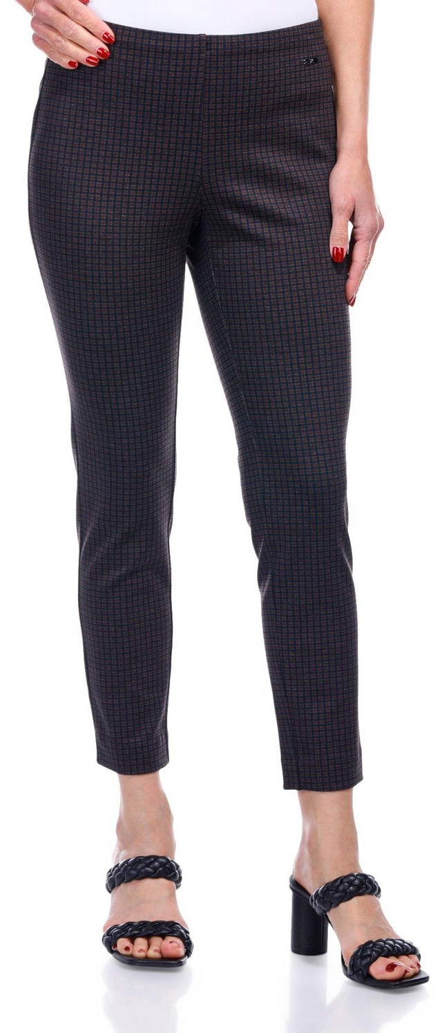 Step out in style with these Houndstooth Pull-On Pants, featuring a classic houndstooth pattern and ankle-length design. These pants offer a comfortable fit and effortless elegance, perfect for both casual and dressy occasions. Pair them with your favorite top for a chic and sophisticated look that transitions seamlessly from day to night. Inseam measures approximately 26 in. Fabrication is 53% polyester, 42% viscose, 5% elastane.