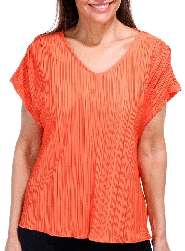 Add a touch of elegance to your wardrobe with this Short Sleeve Top, crafted from textured plissé fabric and featuring a flattering V-neck. This top offers a sophisticated yet comfortable look, perfect for any occasion. Pair it with your favorite jeans or a skirt for a chic ensemble that transitions seamlessly from day to night.