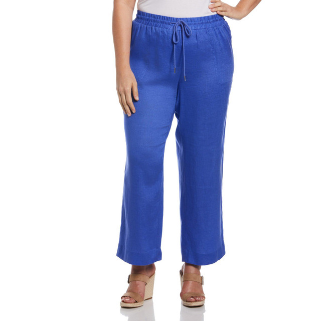 Nothing says laidback summer style like breathable linen pants, and this wide leg pair offers a breezy look and feel perfect for sunny days out on the town. The wide leg womens pants feature an easy pull-on elastic waist, with a drawstring to help keep them in place. Pockets at the front and back provide on the go storage, while metal ends on the drawstring make it easy to feed back through if it slips out.