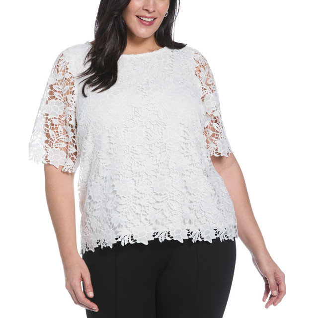 Elegant and feminine, our Plus Short Sleeve Scalloped Lace Top adds timeless charm to any outfit. Designed with delicate lace detailing and scalloped edges, this top offers a flattering fit and just the right amount of coverage. Perfect for special occasions or elevating your everyday look.