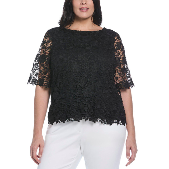 Elegant and feminine, our Plus Short Sleeve Scalloped Lace Top adds timeless charm to any outfit. Designed with delicate lace detailing and scalloped edges, this top offers a flattering fit and just the right amount of coverage. Perfect for special occasions or elevating your everyday look.